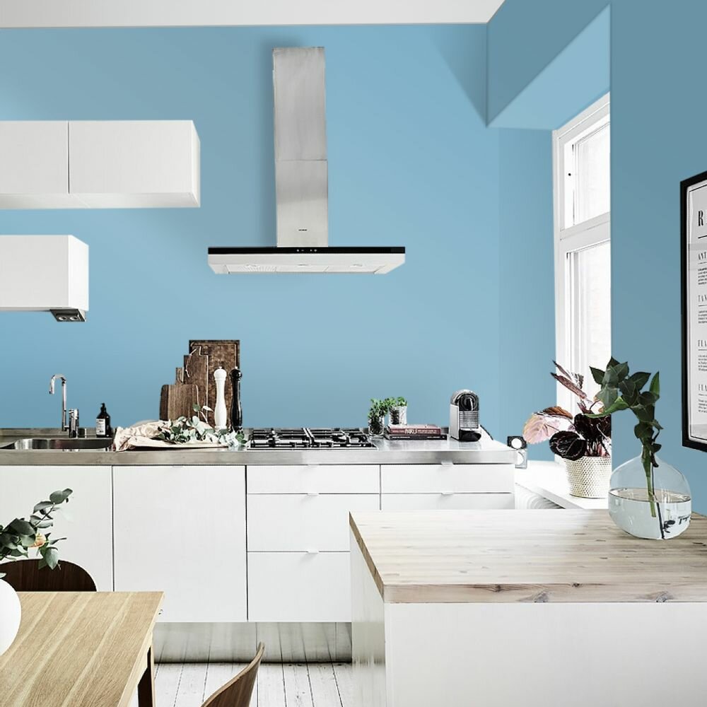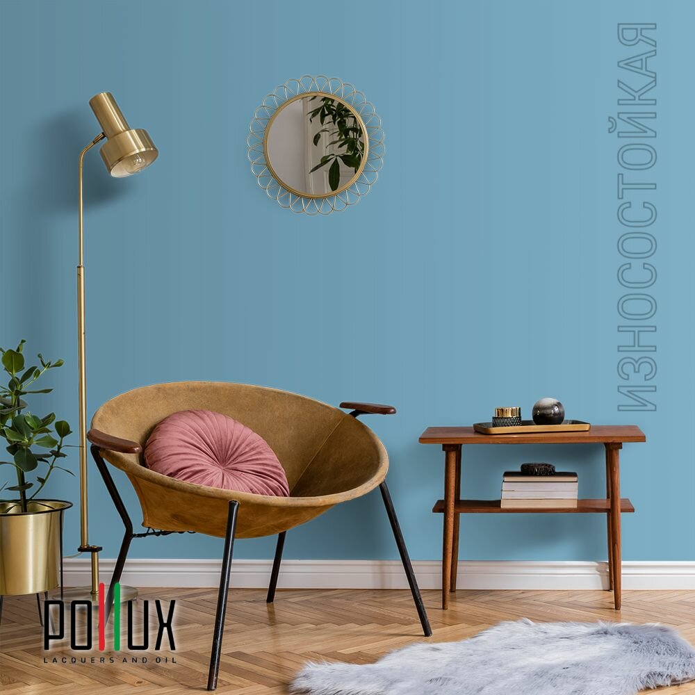 Краска моющаяся интерьерная для стен и потолков, Pollux INTERIOR без запаха, быстросохнущая, акриловая, матовое покрытие, цвет NCS S 5020-B, 1л.