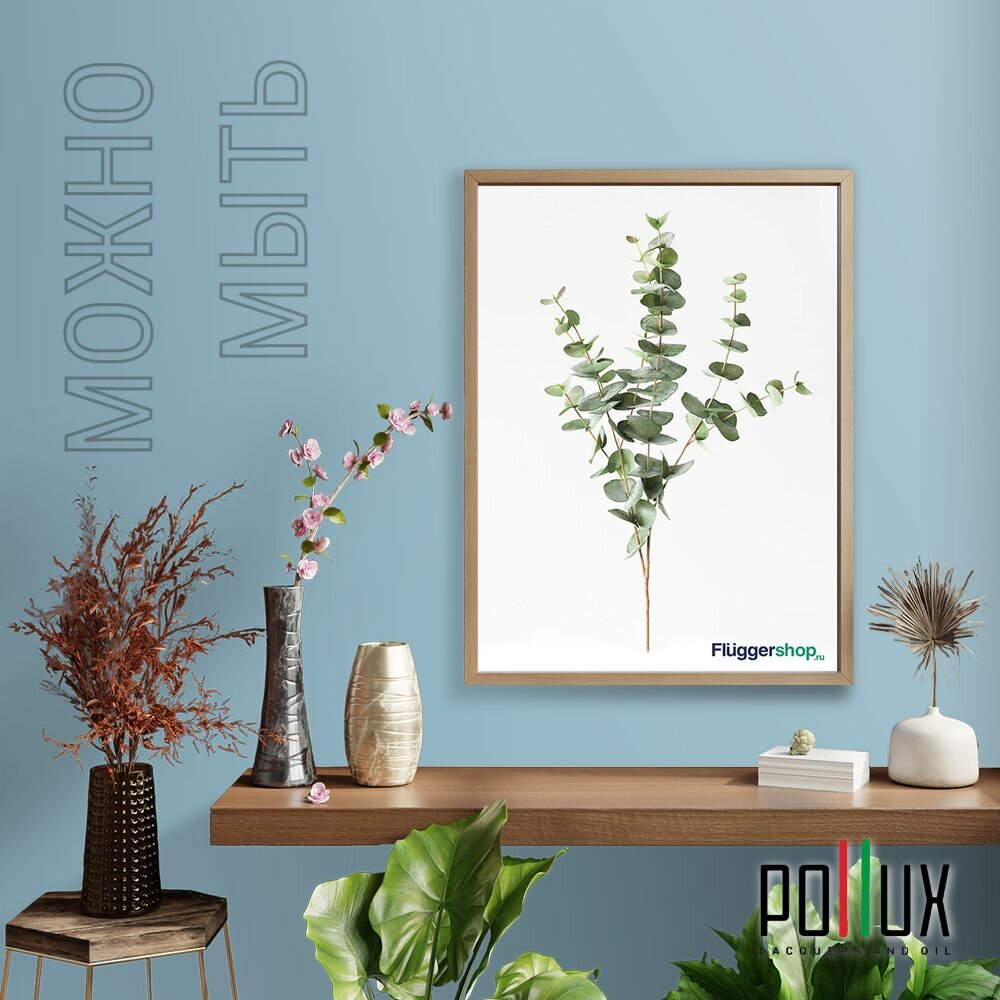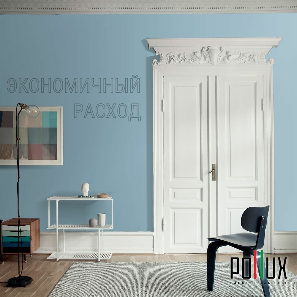 Краска моющаяся интерьерная для стен и потолков, Pollux INTERIOR без запаха, быстросохнущая, акриловая, матовое покрытие, цвет NCS S 2065-B, 1л.