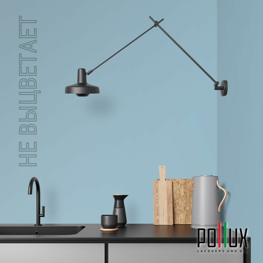 Краска моющаяся интерьерная для стен и потолков, Pollux INTERIOR без запаха, быстросохнущая, акриловая, матовое покрытие, цвет NCS S 3502-B, 1л.
