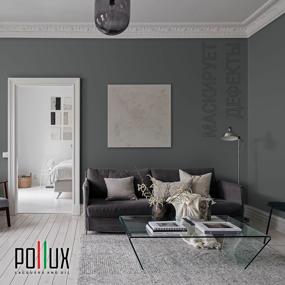 Краска моющаяся интерьерная для стен и потолков, Pollux INTERIOR без запаха, быстросохнущая, акриловая, матовое покрытие, цвет NCS S 7020-B, 1л.
