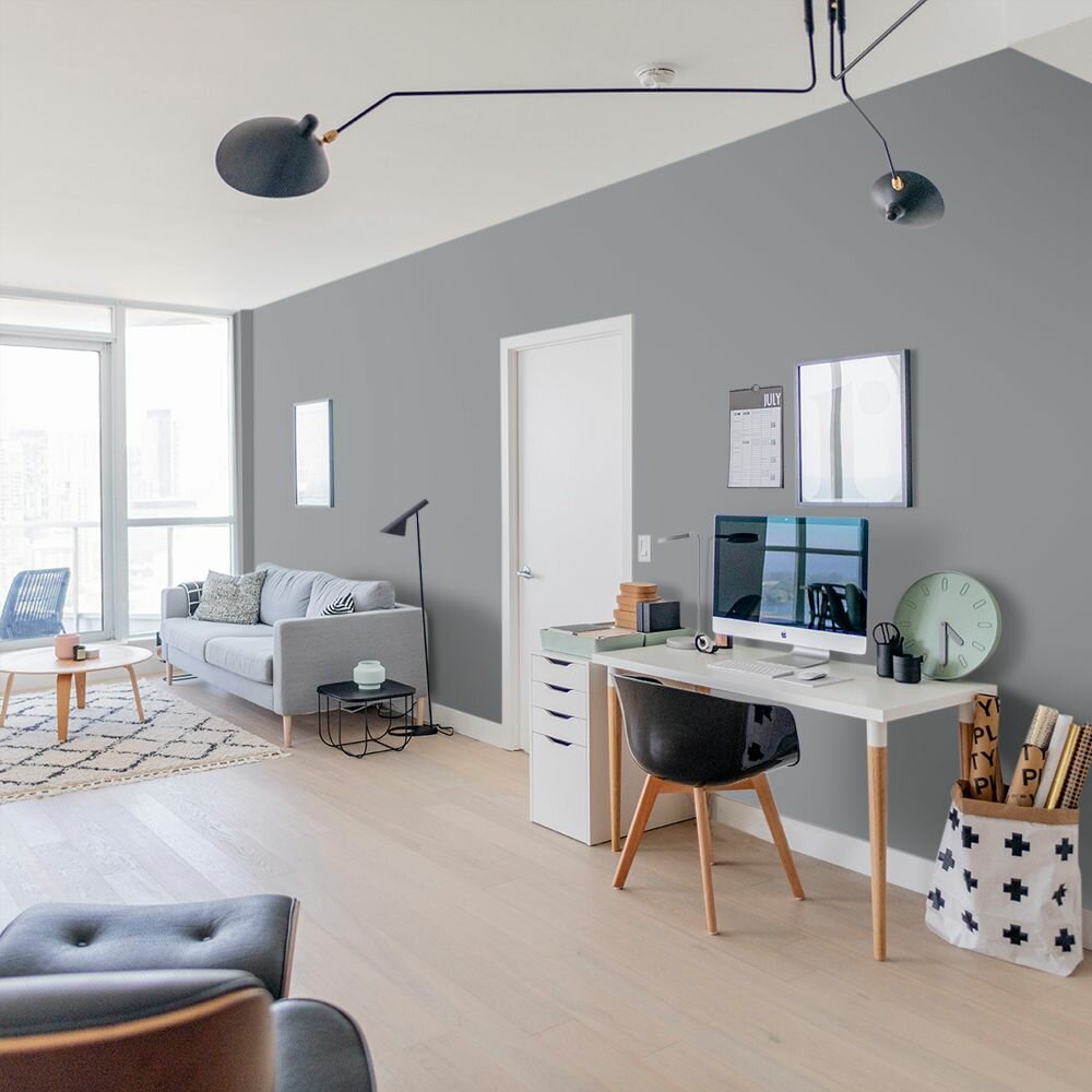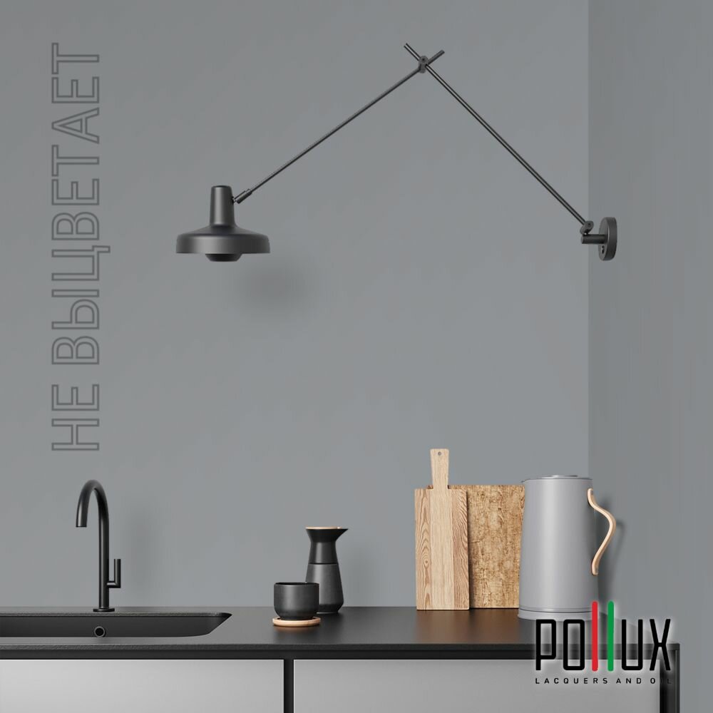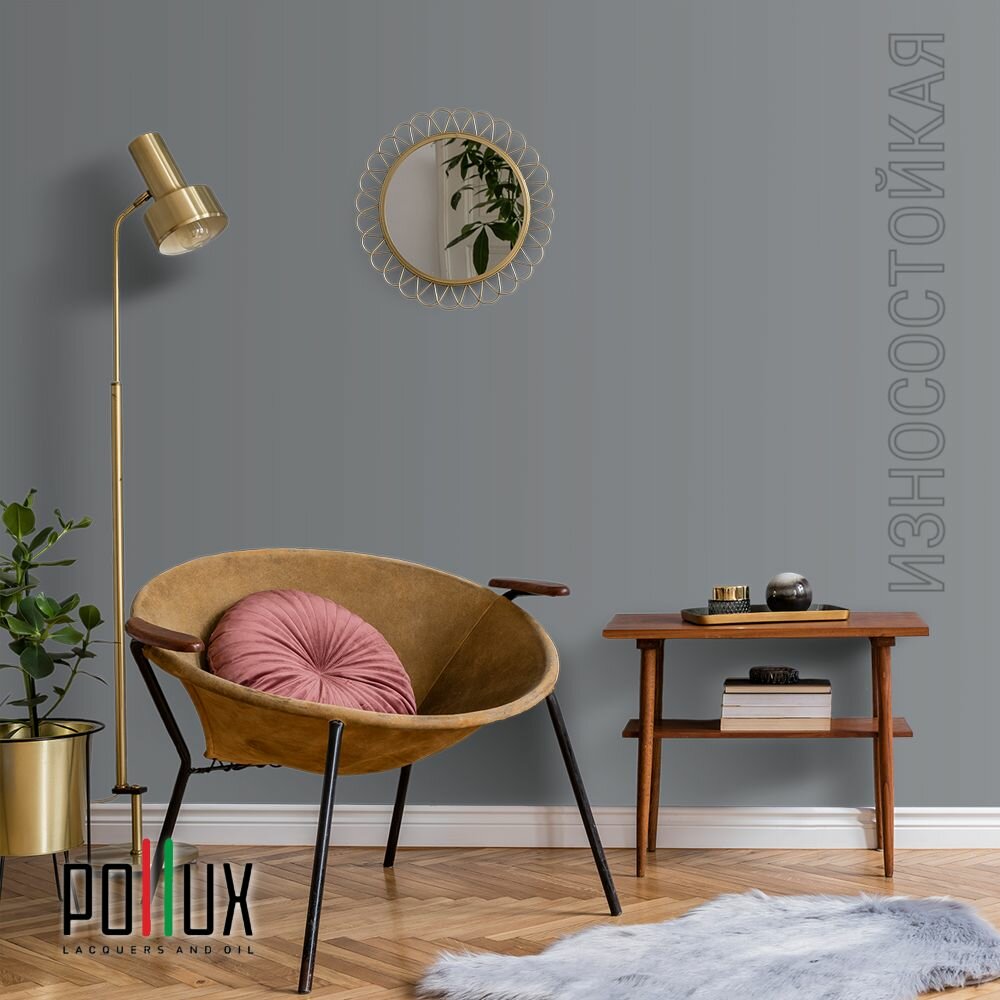 Краска моющаяся интерьерная для стен и потолков, Pollux INTERIOR без запаха, быстросохнущая, акриловая, матовое покрытие, цвет NCS S 7020-B, 1л.