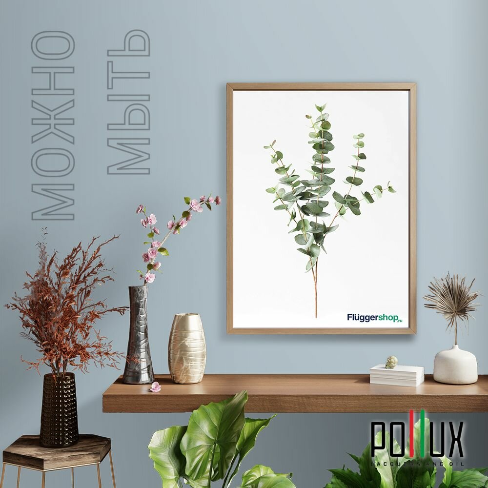 Краска моющаяся интерьерная для стен и потолков, Pollux INTERIOR без запаха, быстросохнущая, акриловая, матовое покрытие, цвет NCS S 5502-B, 1л.