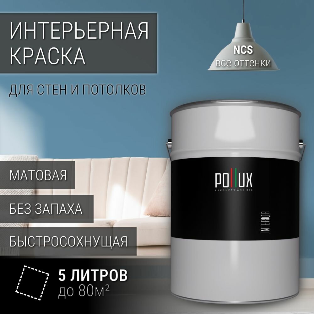 Краска моющаяся интерьерная для стен и потолков, Pollux INTERIOR без запаха, быстросохнущая, акриловая, матовое покрытие, цвет NCS S 8502-B, 5л.