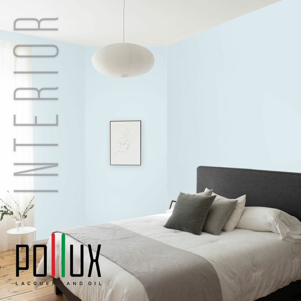 Краска моющаяся интерьерная для стен и потолков, Pollux INTERIOR без запаха, быстросохнущая, акриловая, матовое покрытие, цвет NCS S 2010-B, 1л.