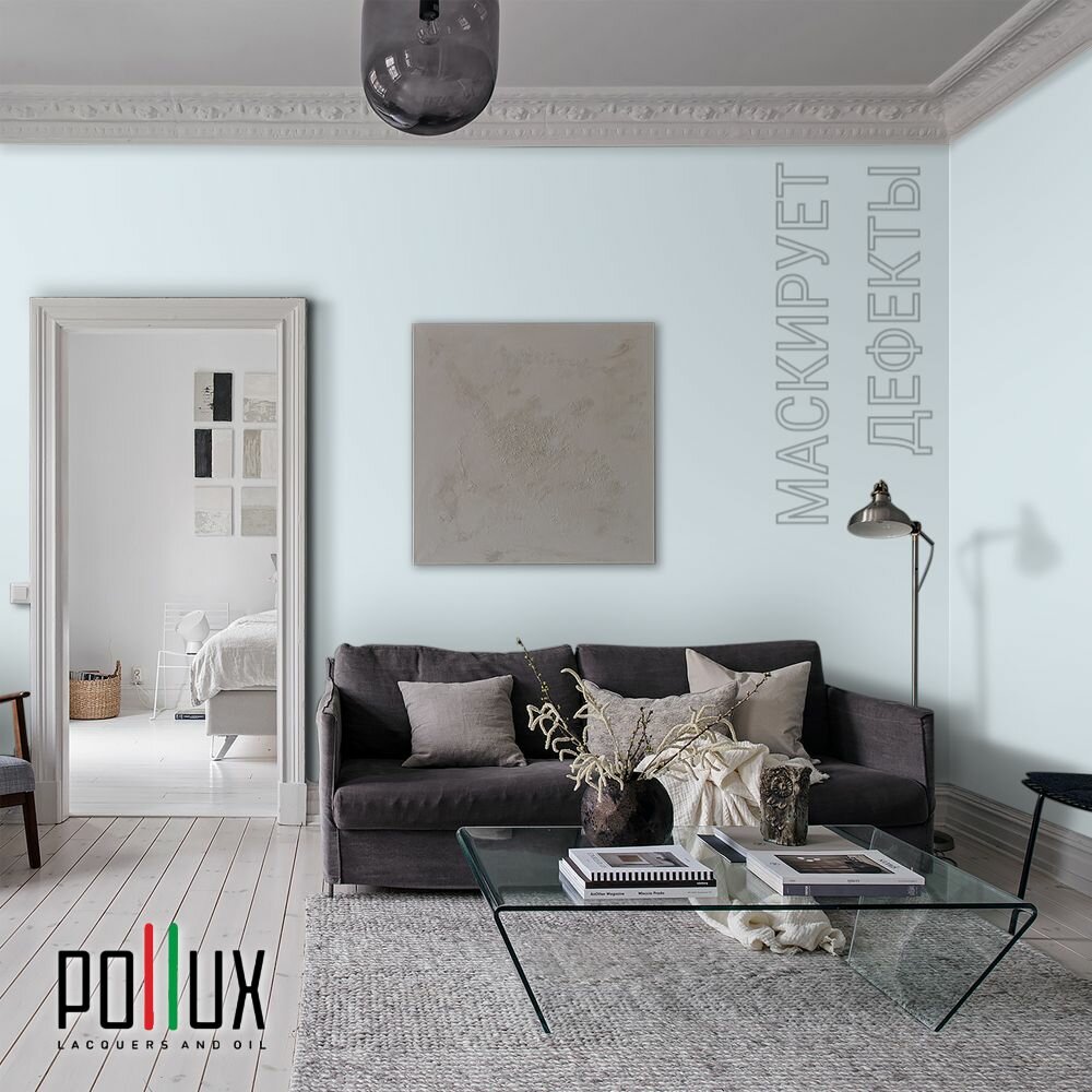 Краска моющаяся интерьерная для стен и потолков, Pollux INTERIOR без запаха, быстросохнущая, акриловая, матовое покрытие, цвет NCS S 1030-B, 1л.