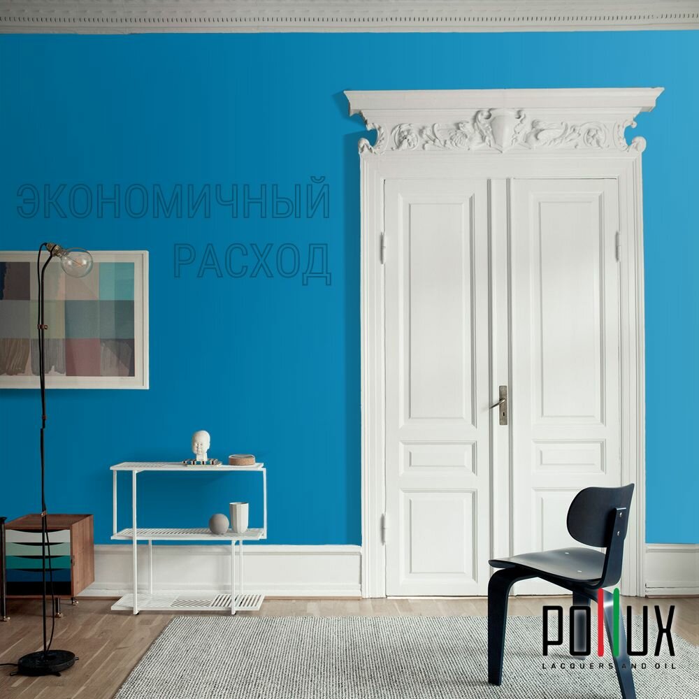 Краска моющаяся интерьерная для стен и потолков, Pollux INTERIOR без запаха, быстросохнущая, акриловая, матовое покрытие, цвет NCS S 2040-B, 1л.