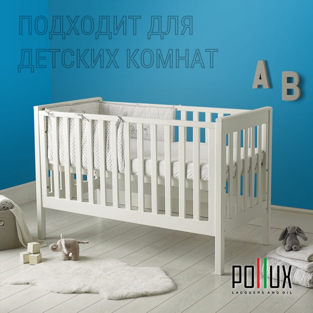 Краска моющаяся интерьерная для стен и потолков, Pollux INTERIOR без запаха, быстросохнущая, акриловая, матовое покрытие, цвет NCS S 0505-B, 1л.