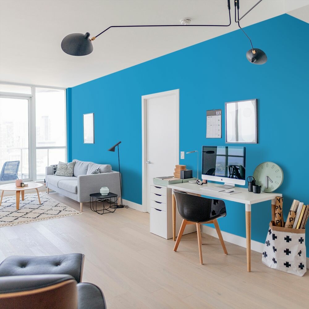 Краска моющаяся интерьерная для стен и потолков, Pollux INTERIOR без запаха, быстросохнущая, акриловая, матовое покрытие, цвет NCS S 4550-B, 1л.