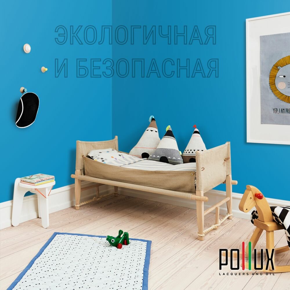Краска моющаяся интерьерная для стен и потолков, Pollux INTERIOR без запаха, быстросохнущая, акриловая, матовое покрытие, цвет NCS S 2010-B, 1л.