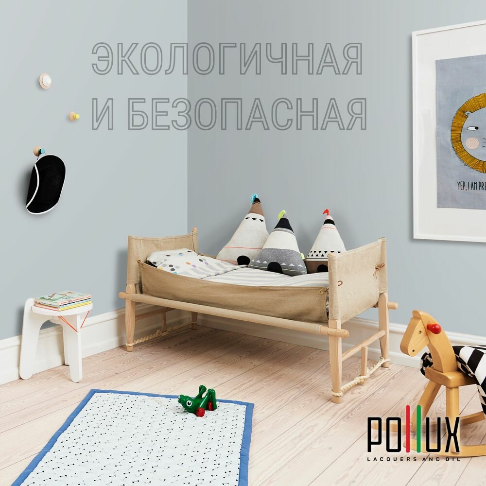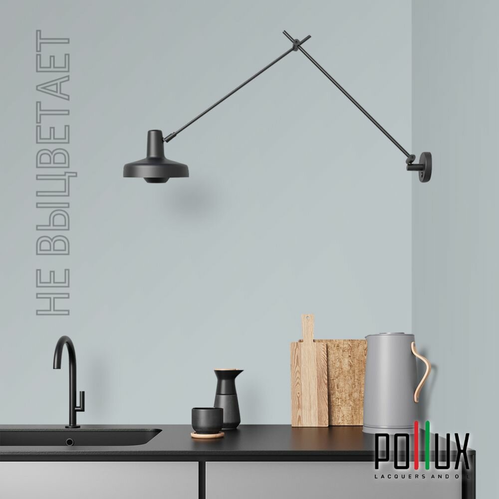 Краска моющаяся интерьерная для стен и потолков, Pollux INTERIOR без запаха, быстросохнущая, акриловая, матовое покрытие, цвет NCS S 4030-B, 1л.