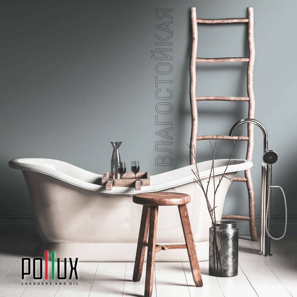 Краска моющаяся интерьерная для стен и потолков, Pollux INTERIOR без запаха, быстросохнущая, акриловая, матовое покрытие, цвет NCS S 1060-B, 1л.