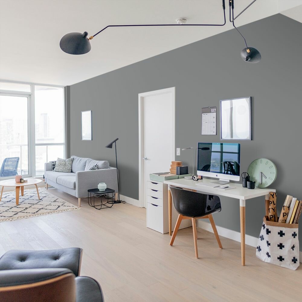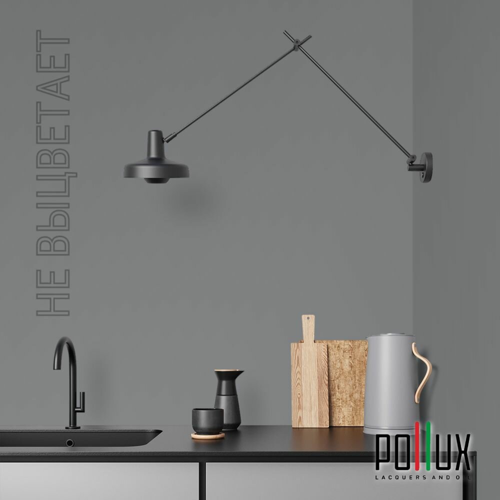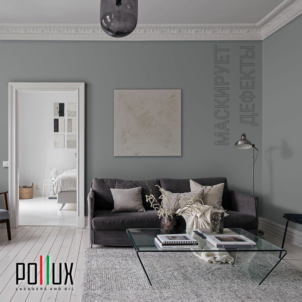 Краска моющаяся интерьерная для стен и потолков, Pollux INTERIOR без запаха, быстросохнущая, акриловая, матовое покрытие, цвет NCS S 7020-B, 1л.