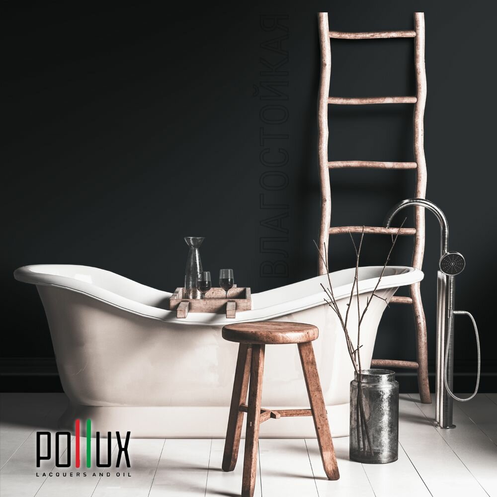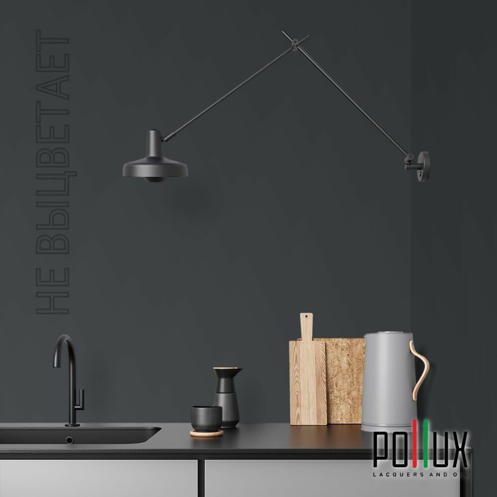 Краска моющаяся интерьерная для стен и потолков, Pollux INTERIOR без запаха, быстросохнущая, акриловая, матовое покрытие, цвет NCS S 7020-B, 1л.
