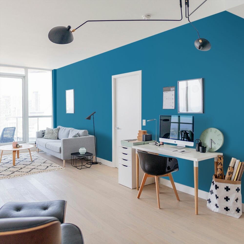 Краска моющаяся интерьерная для стен и потолков, Pollux INTERIOR без запаха, быстросохнущая, акриловая, матовое покрытие, цвет NCS S 4550-B, 1л.