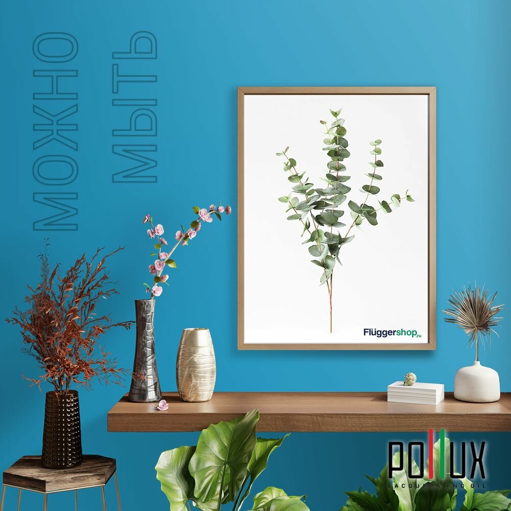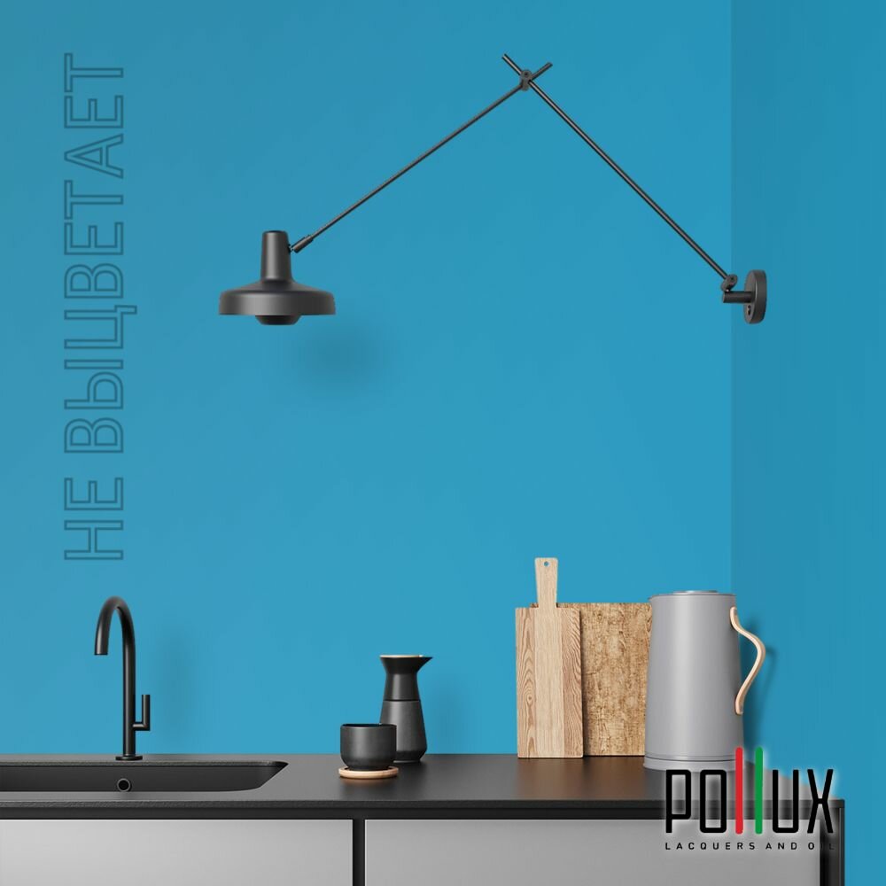 Краска моющаяся интерьерная для стен и потолков, Pollux INTERIOR без запаха, быстросохнущая, акриловая, матовое покрытие, цвет NCS S 4550-B, 1л.