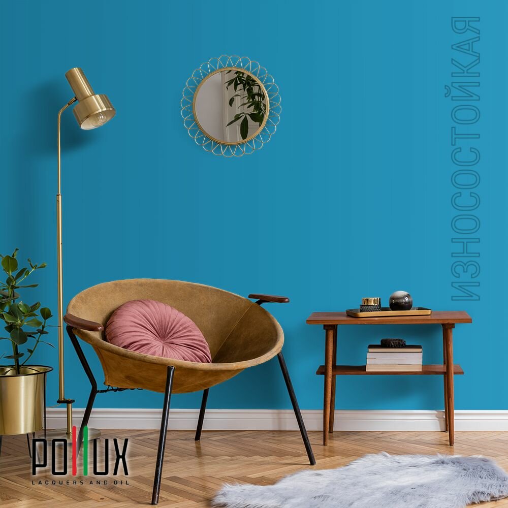 Краска моющаяся интерьерная для стен и потолков, Pollux INTERIOR без запаха, быстросохнущая, акриловая, матовое покрытие, цвет NCS S 2040-B, 1л.