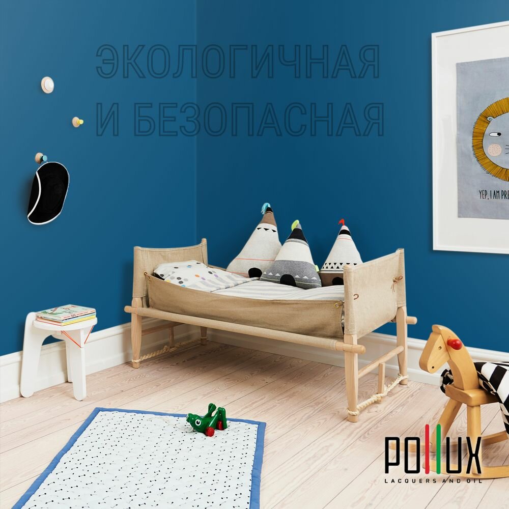 Краска моющаяся интерьерная для стен и потолков, Pollux INTERIOR без запаха, быстросохнущая, акриловая, матовое покрытие, цвет NCS S 3030-B, 1л.