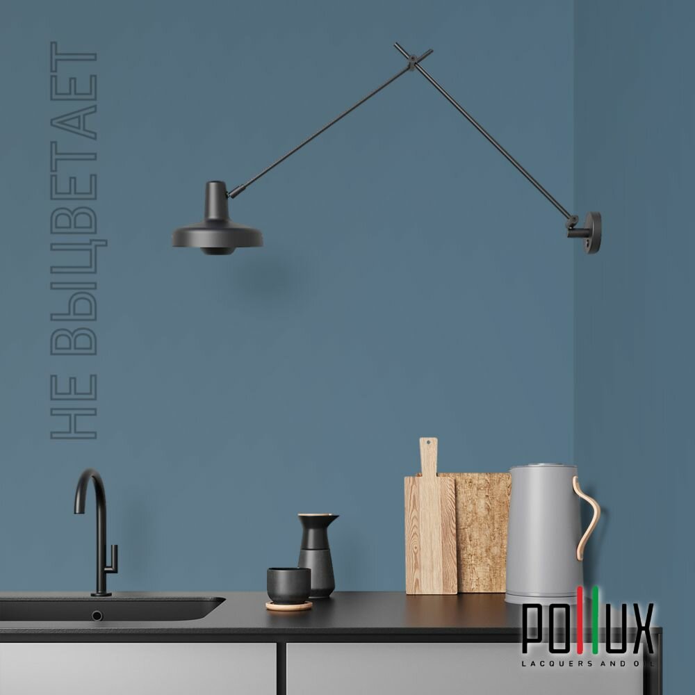 Краска моющаяся интерьерная для стен и потолков, Pollux INTERIOR без запаха, быстросохнущая, акриловая, матовое покрытие, цвет NCS S 4050-B, 1л.