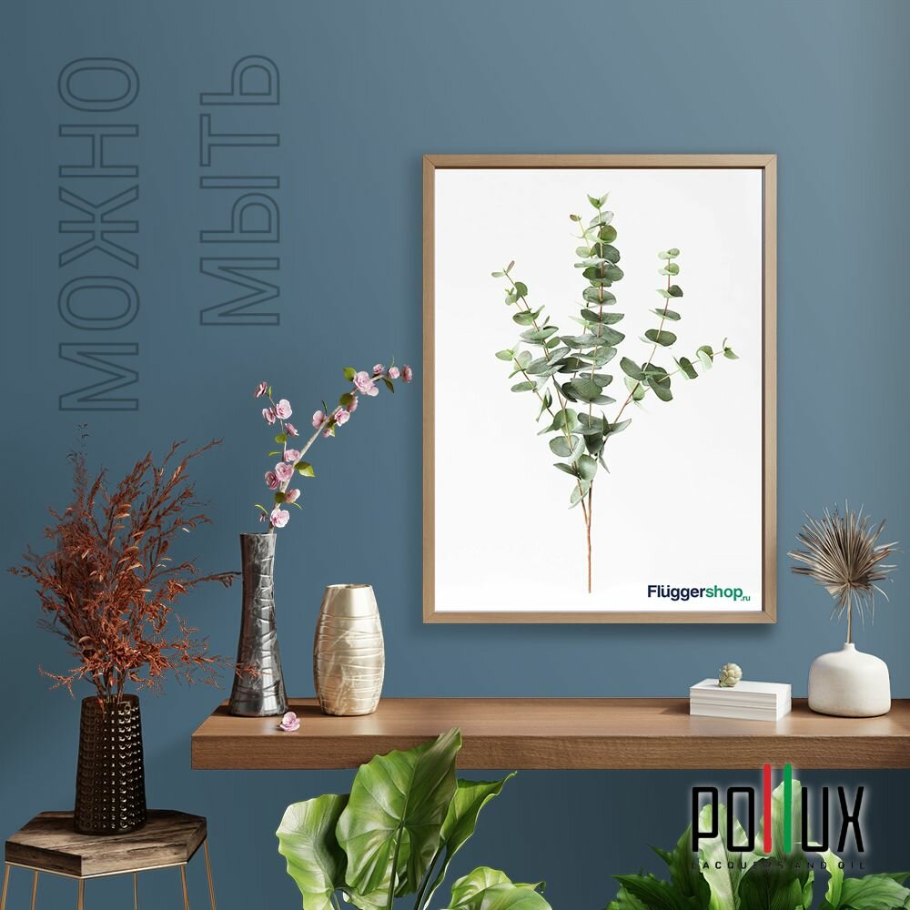 Краска моющаяся интерьерная для стен и потолков, Pollux INTERIOR без запаха, быстросохнущая, акриловая, матовое покрытие, цвет NCS S 3060-B, 1л.