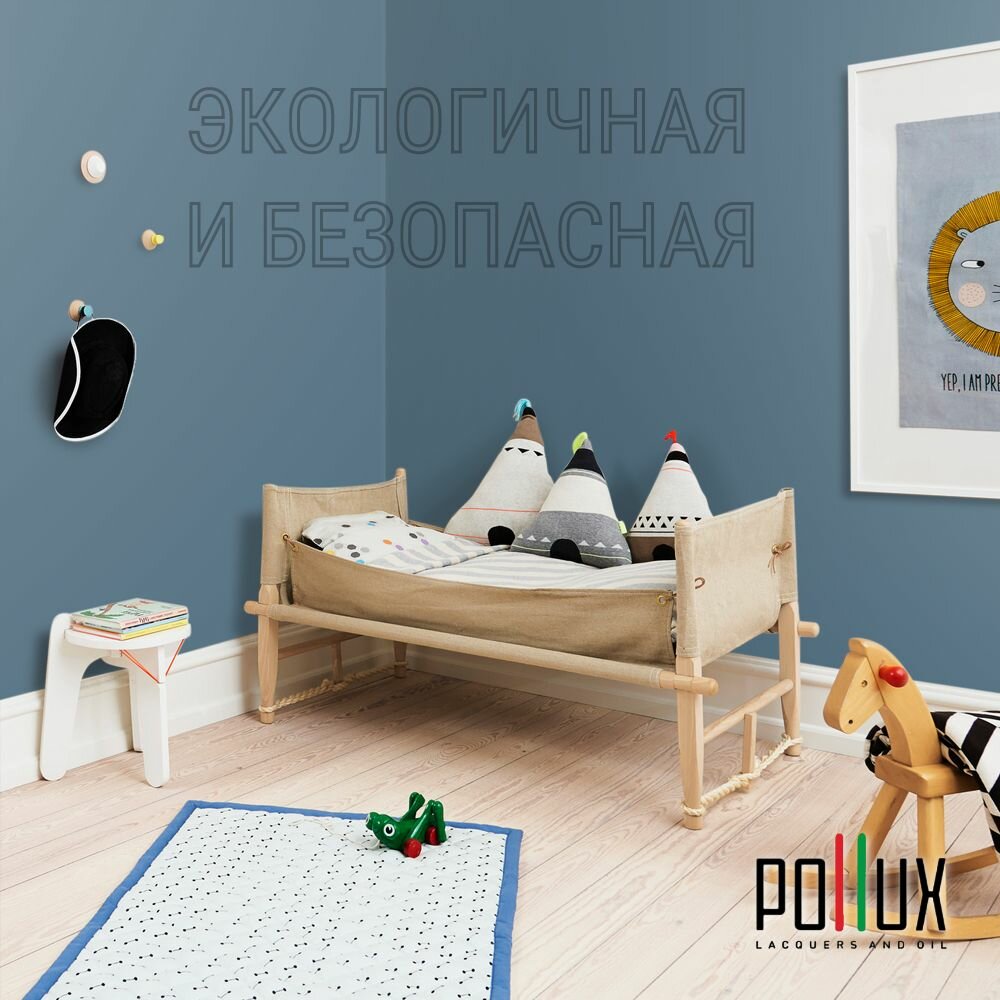 Краска моющаяся интерьерная для стен и потолков, Pollux INTERIOR без запаха, быстросохнущая, акриловая, матовое покрытие, цвет NCS S 4550-B, 1л.
