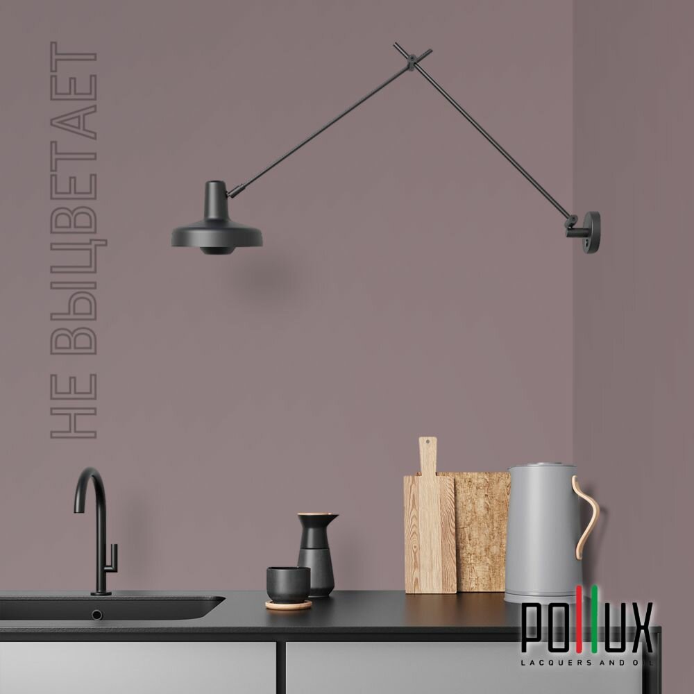 Краска моющаяся интерьерная для стен и потолков, Pollux INTERIOR без запаха, быстросохнущая, акриловая, матовое покрытие, цвет NCS S 0907-R10B, 1л.