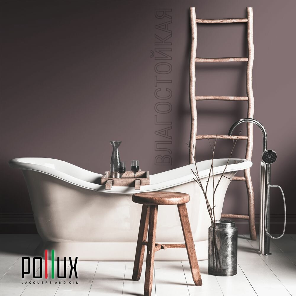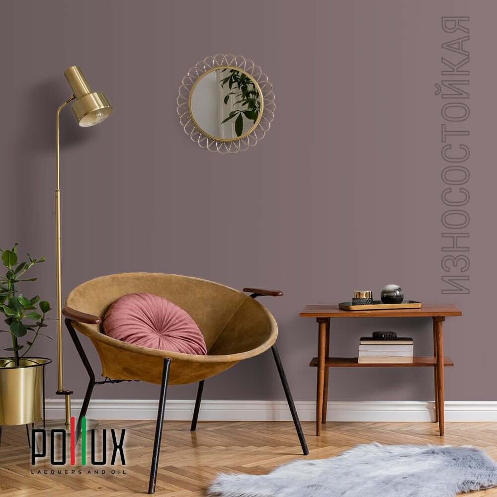 Краска моющаяся интерьерная для стен и потолков, Pollux INTERIOR без запаха, быстросохнущая, акриловая, матовое покрытие, цвет NCS S 3030-R10B, 1л.