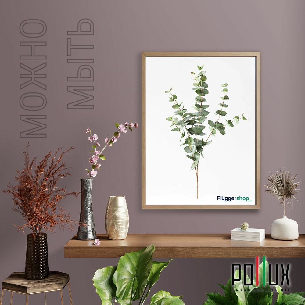 Краска моющаяся интерьерная для стен и потолков, Pollux INTERIOR без запаха, быстросохнущая, акриловая, матовое покрытие, цвет NCS S 2005-R10B, 1л.
