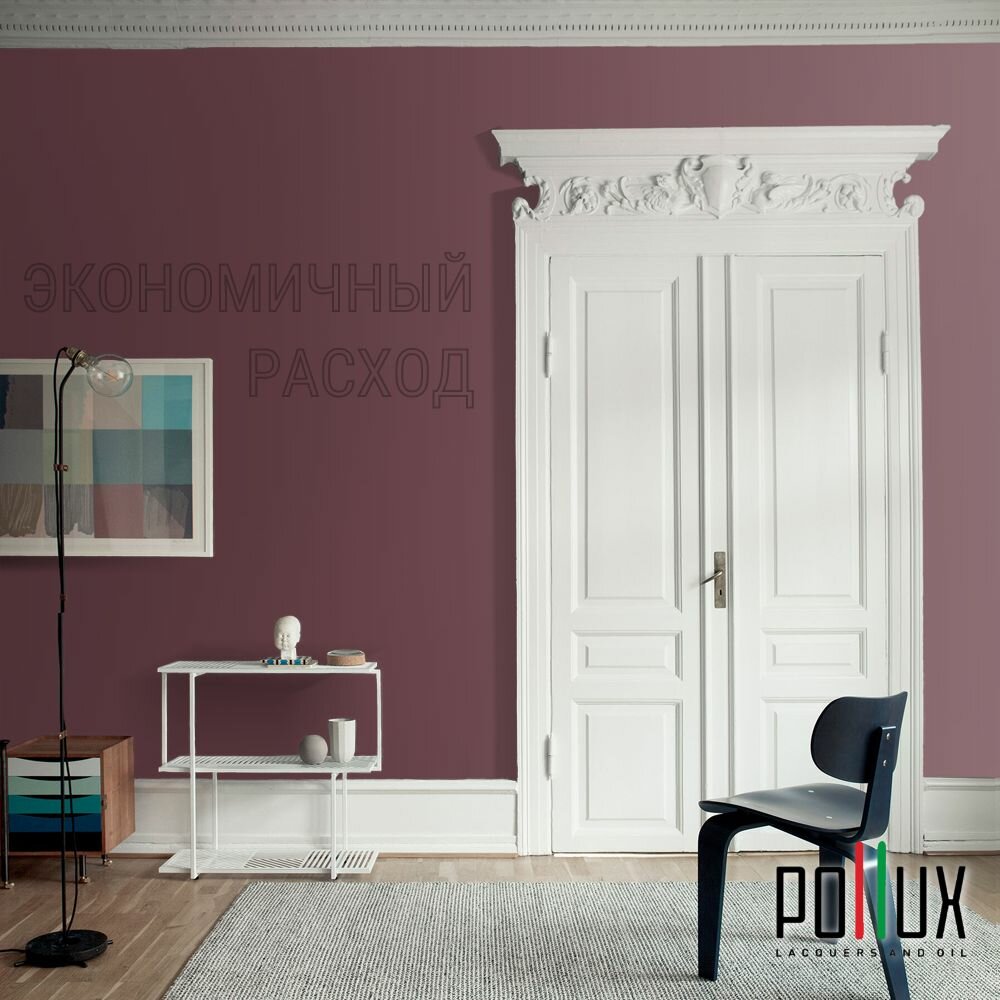 Краска моющаяся интерьерная для стен и потолков, Pollux INTERIOR без запаха, быстросохнущая, акриловая, матовое покрытие, цвет NCS S 2005-R10B, 1л.