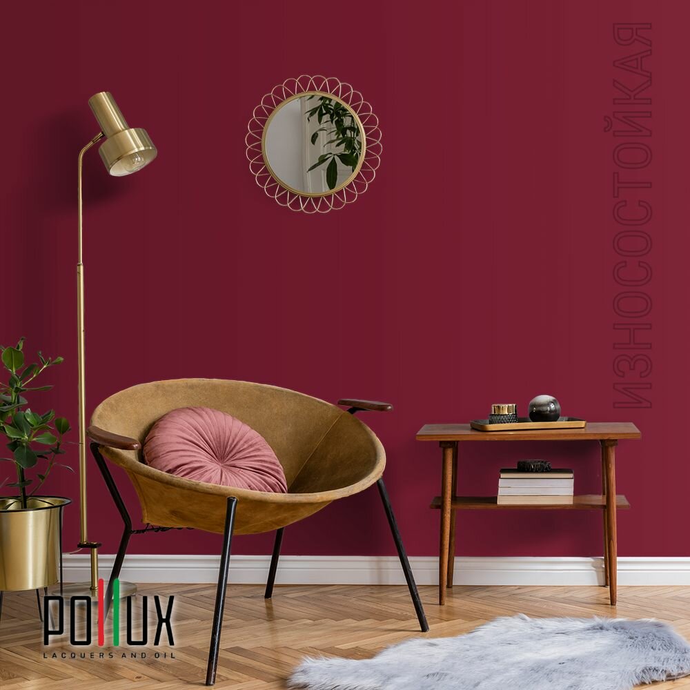 Краска моющаяся интерьерная для стен и потолков, Pollux INTERIOR без запаха, быстросохнущая, акриловая, матовое покрытие, цвет NCS S 3030-R10B, 1л.