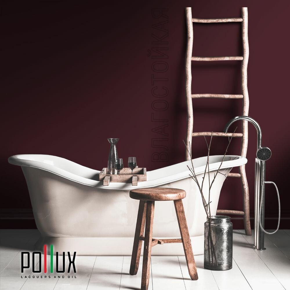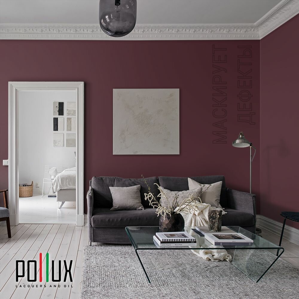 Краска моющаяся интерьерная для стен и потолков, Pollux INTERIOR без запаха, быстросохнущая, акриловая, матовое покрытие, цвет NCS S 2005-R10B, 1л.