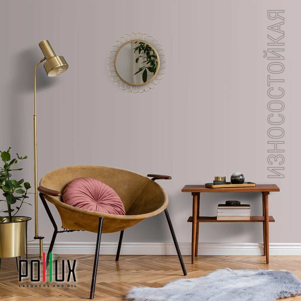 Краска моющаяся интерьерная для стен и потолков, Pollux INTERIOR без запаха, быстросохнущая, акриловая, матовое покрытие, цвет NCS S 0907-R10B, 1л.