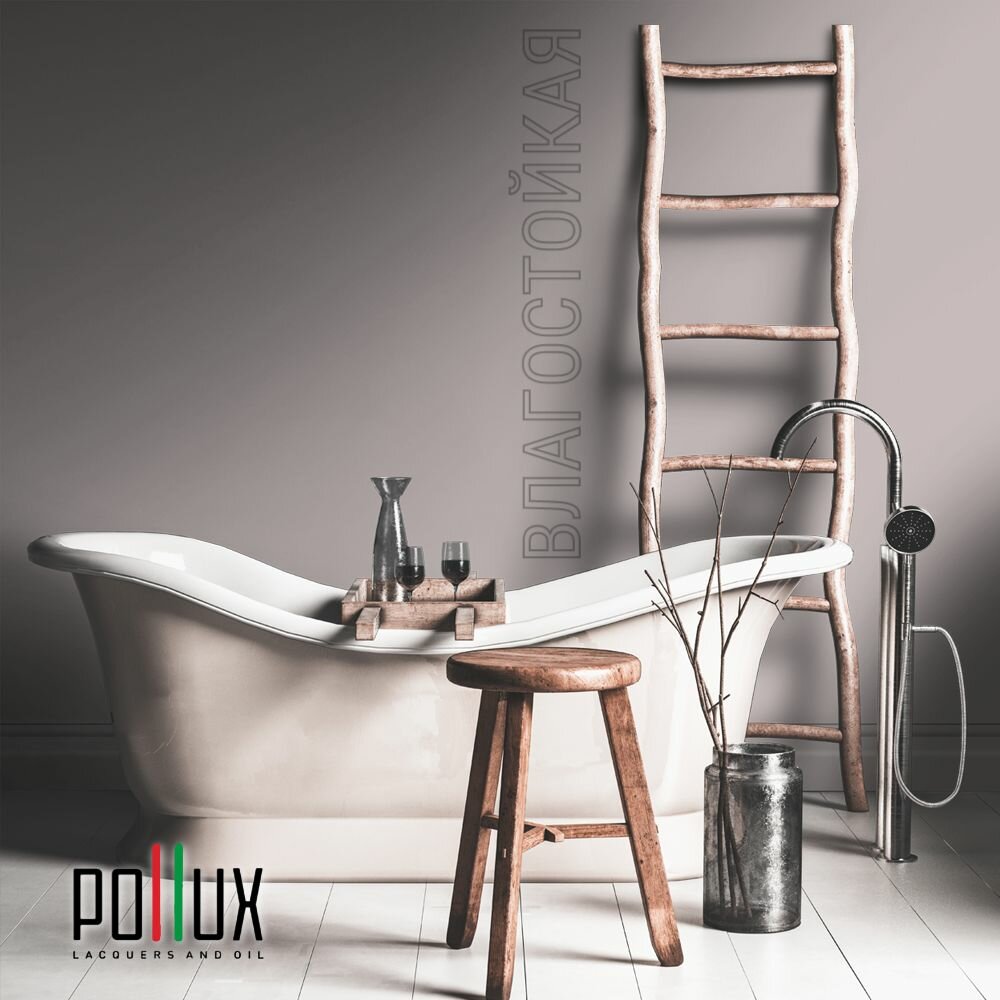 Краска моющаяся интерьерная для стен и потолков, Pollux INTERIOR без запаха, быстросохнущая, акриловая, матовое покрытие, цвет NCS S 7010-R10B, 1л.