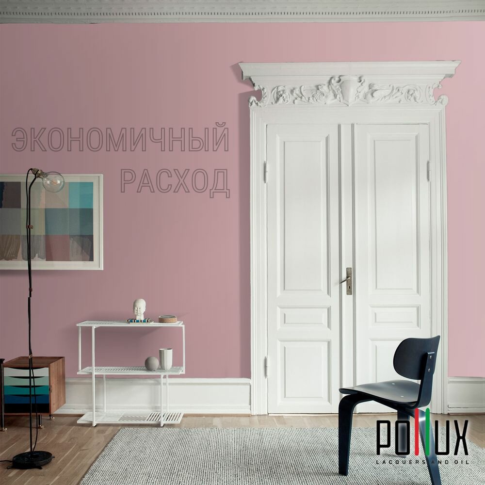 Краска моющаяся интерьерная для стен и потолков, Pollux INTERIOR без запаха, быстросохнущая, акриловая, матовое покрытие, цвет NCS S 0907-R10B, 1л.