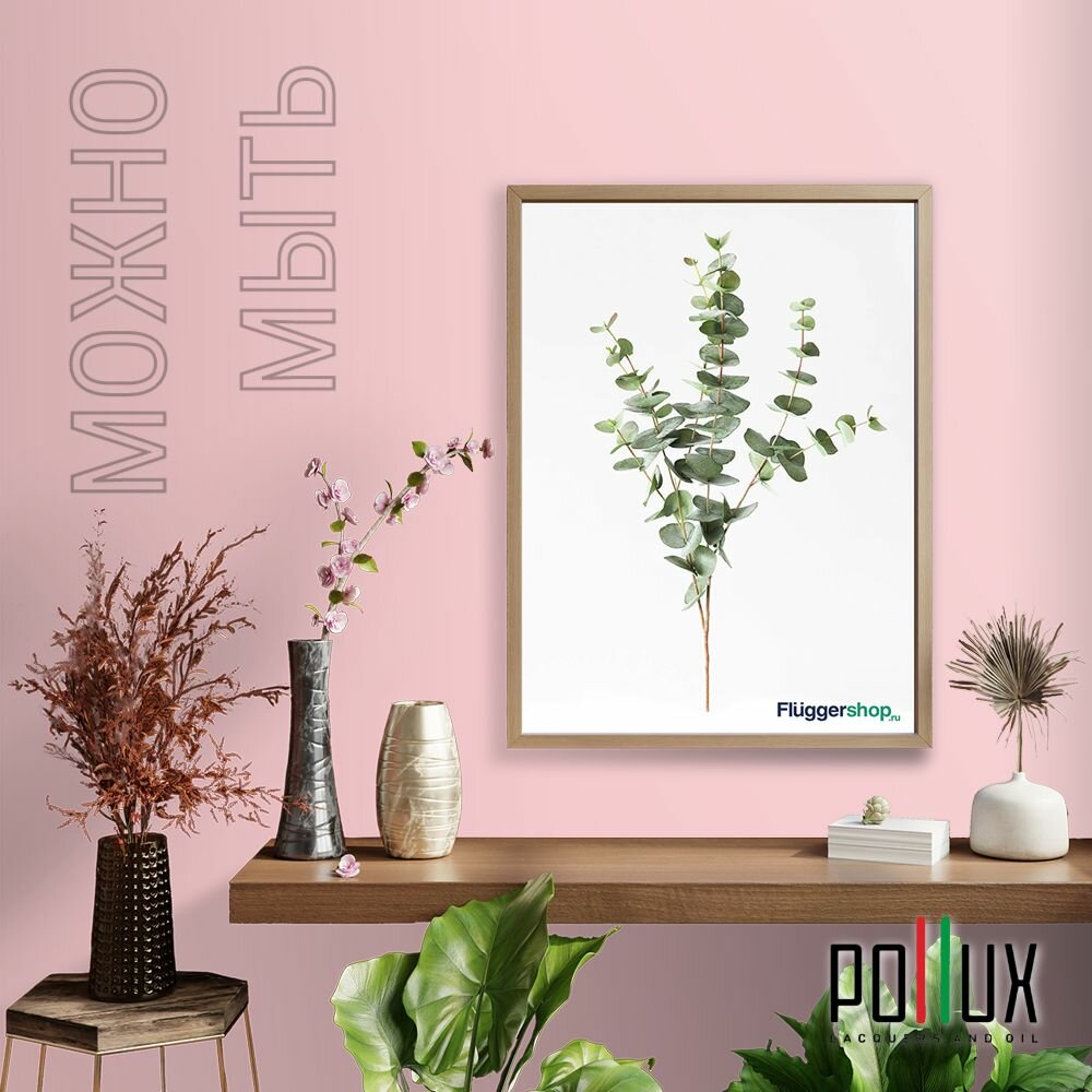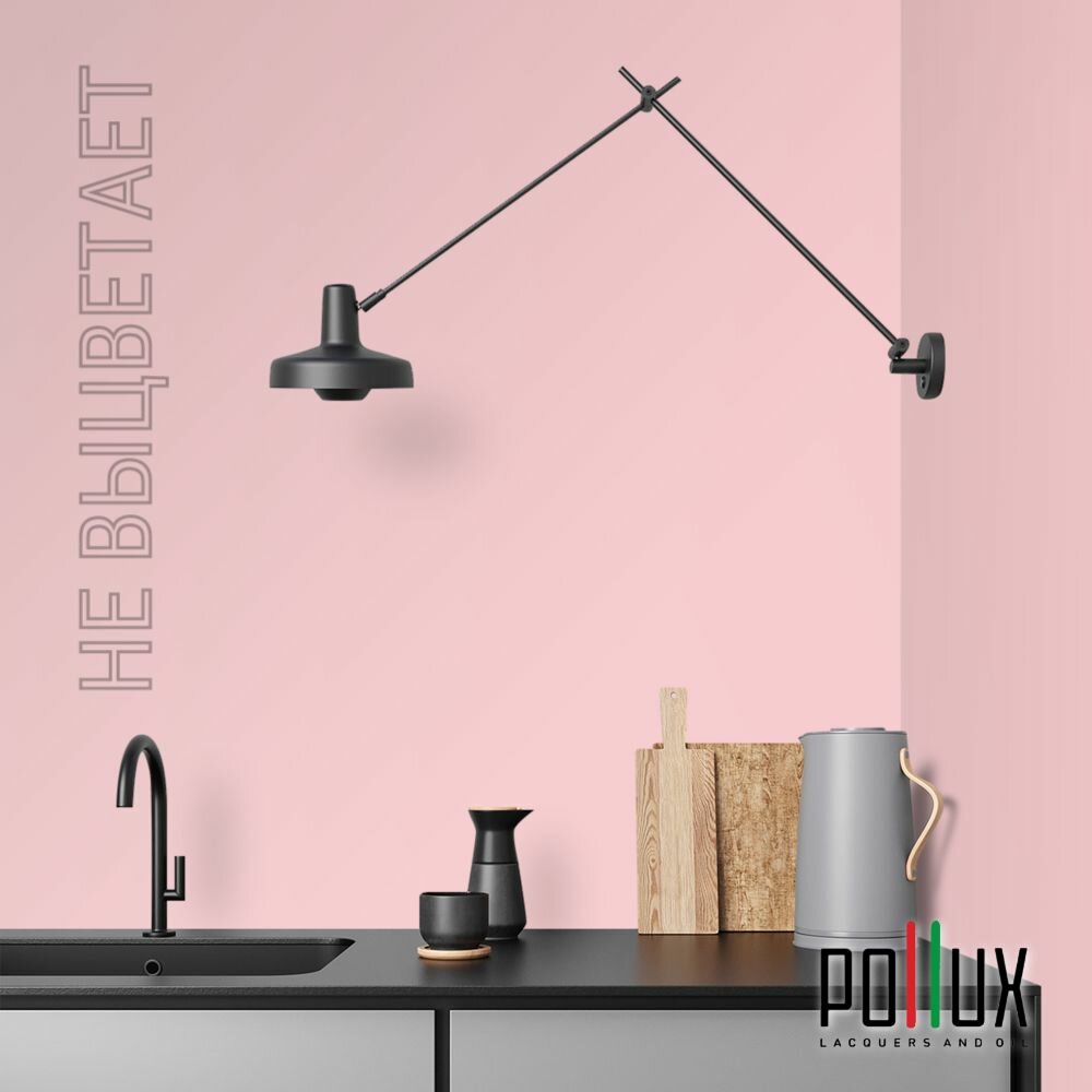 Краска моющаяся интерьерная для стен и потолков, Pollux INTERIOR без запаха, быстросохнущая, акриловая, матовое покрытие, цвет NCS S 0907-R10B, 1л.