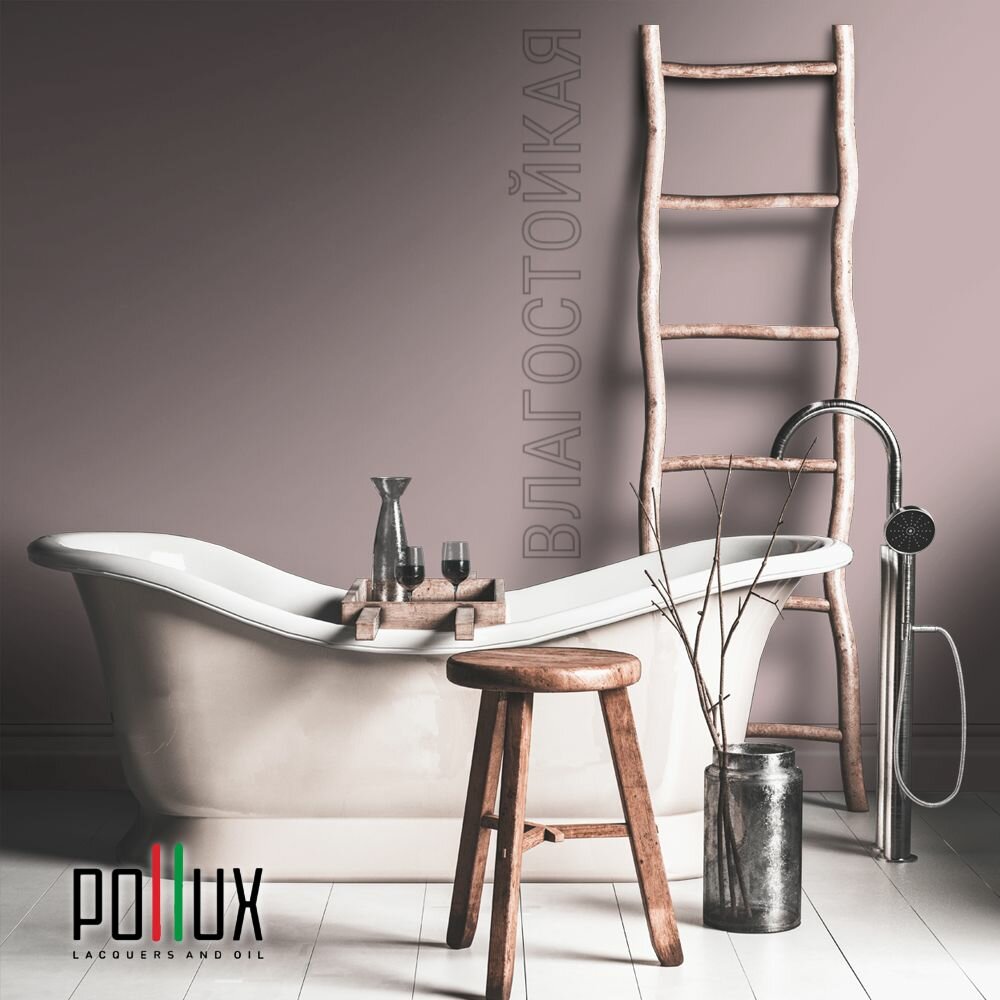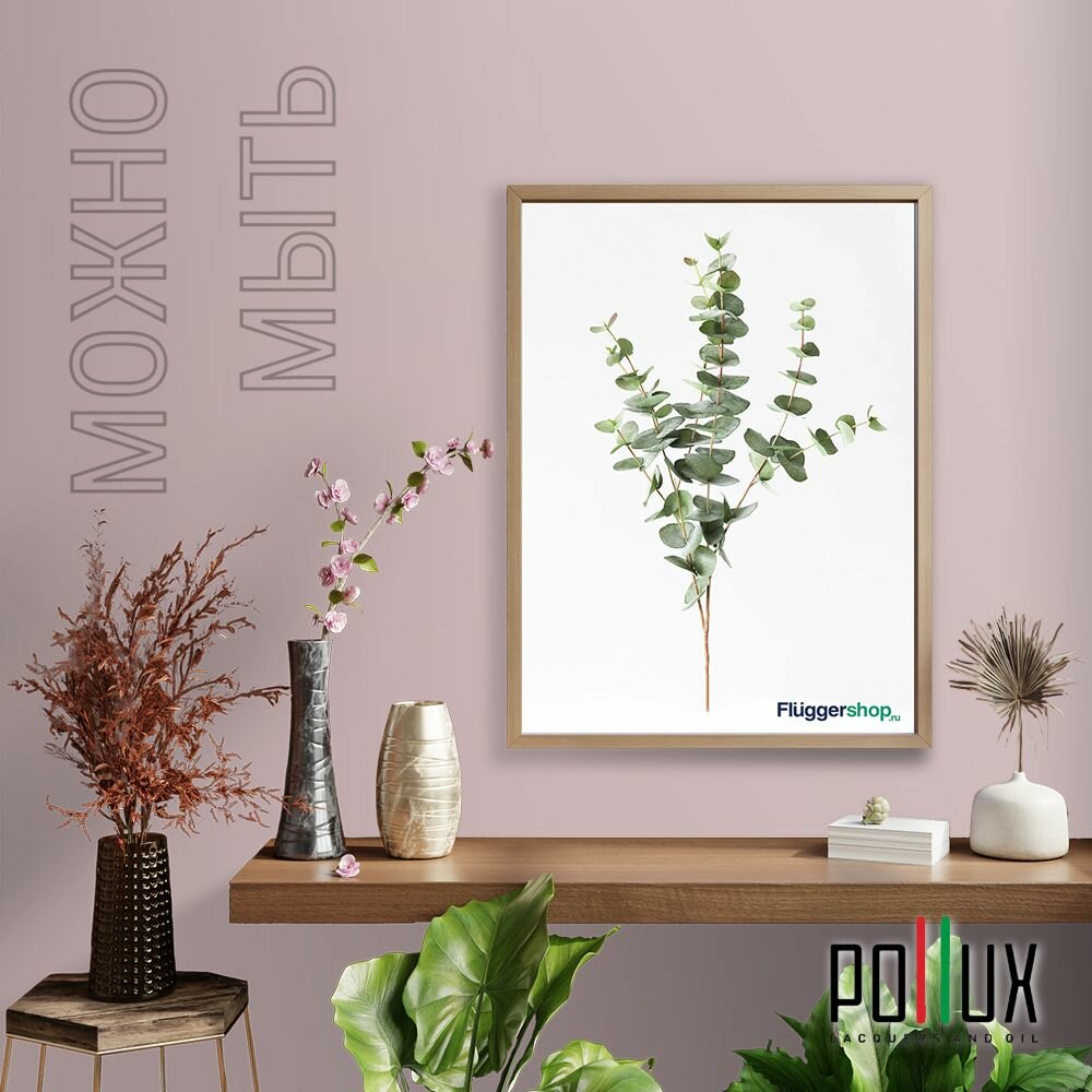 Краска моющаяся интерьерная для стен и потолков, Pollux INTERIOR без запаха, быстросохнущая, акриловая, матовое покрытие, цвет NCS S 2005-R10B, 1л.
