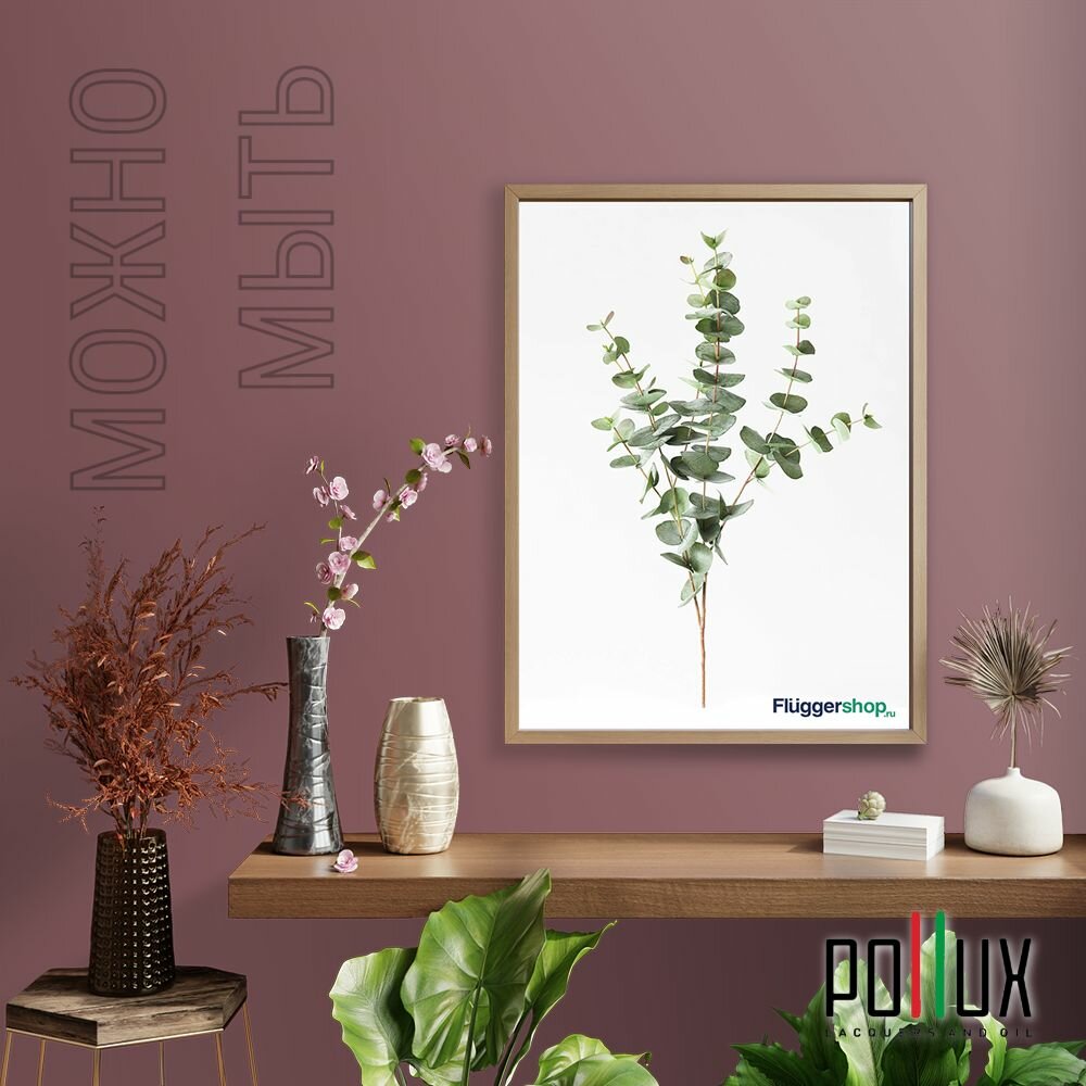 Краска моющаяся интерьерная для стен и потолков, Pollux INTERIOR без запаха, быстросохнущая, акриловая, матовое покрытие, цвет NCS S 2005-R10B, 1л.