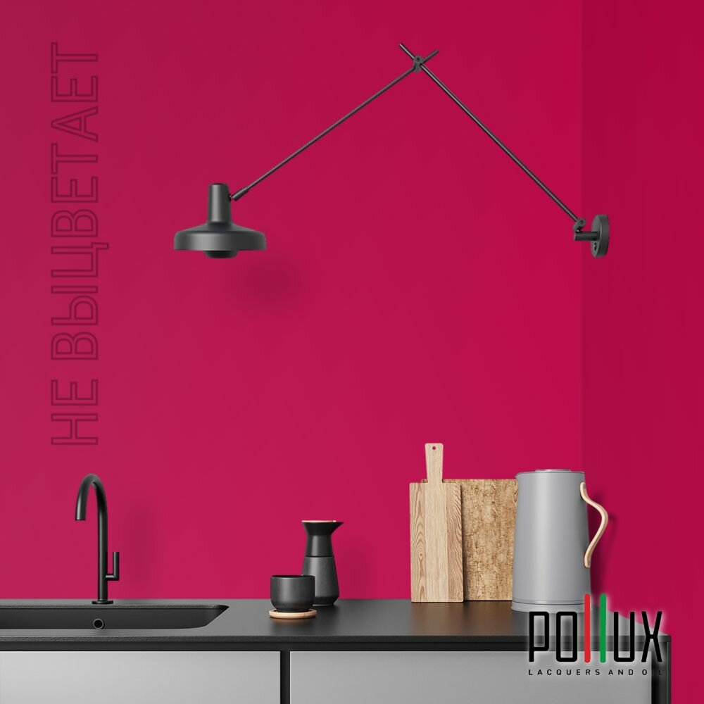 Краска моющаяся интерьерная для стен и потолков, Pollux INTERIOR без запаха, быстросохнущая, акриловая, матовое покрытие, цвет NCS S 3030-R10B, 1л.
