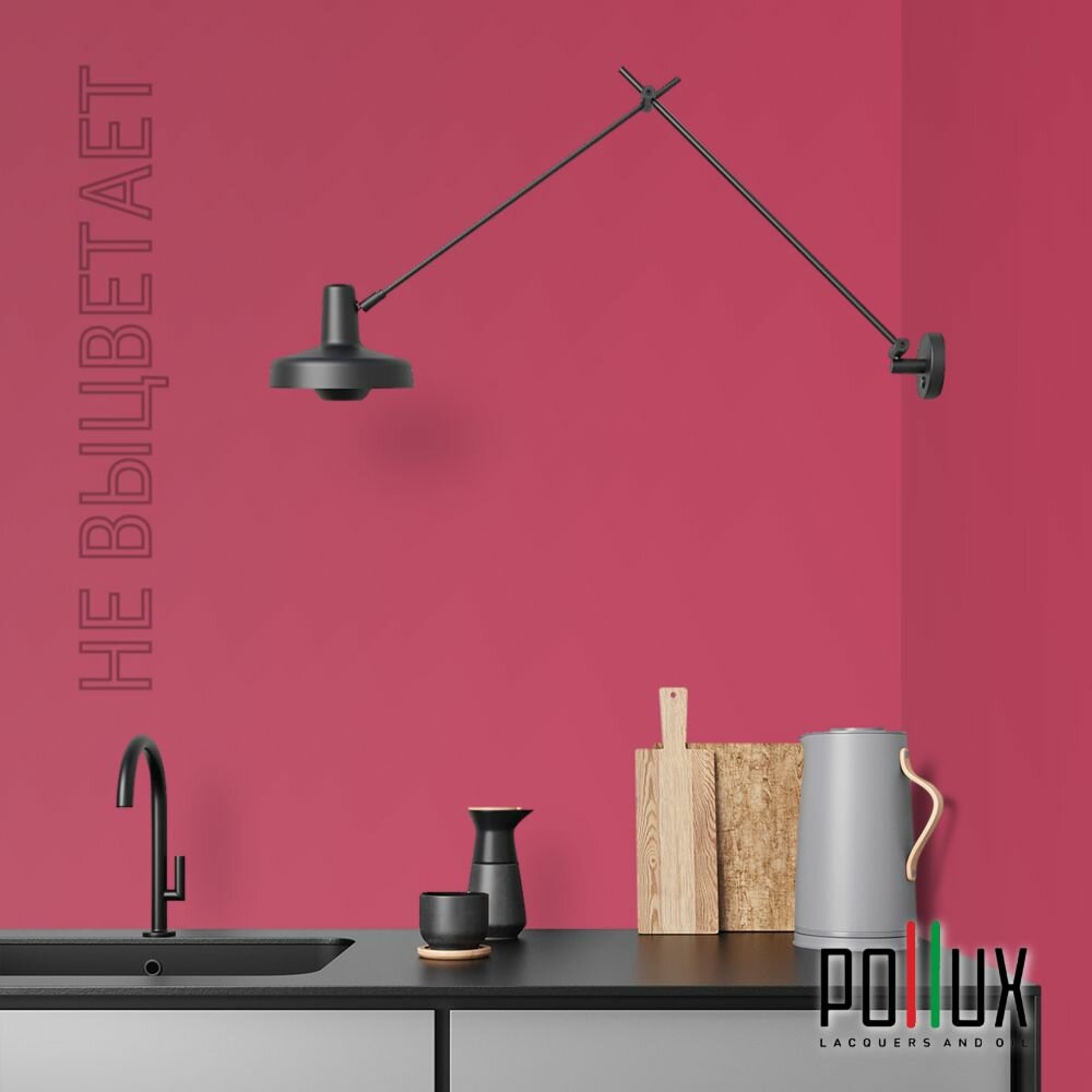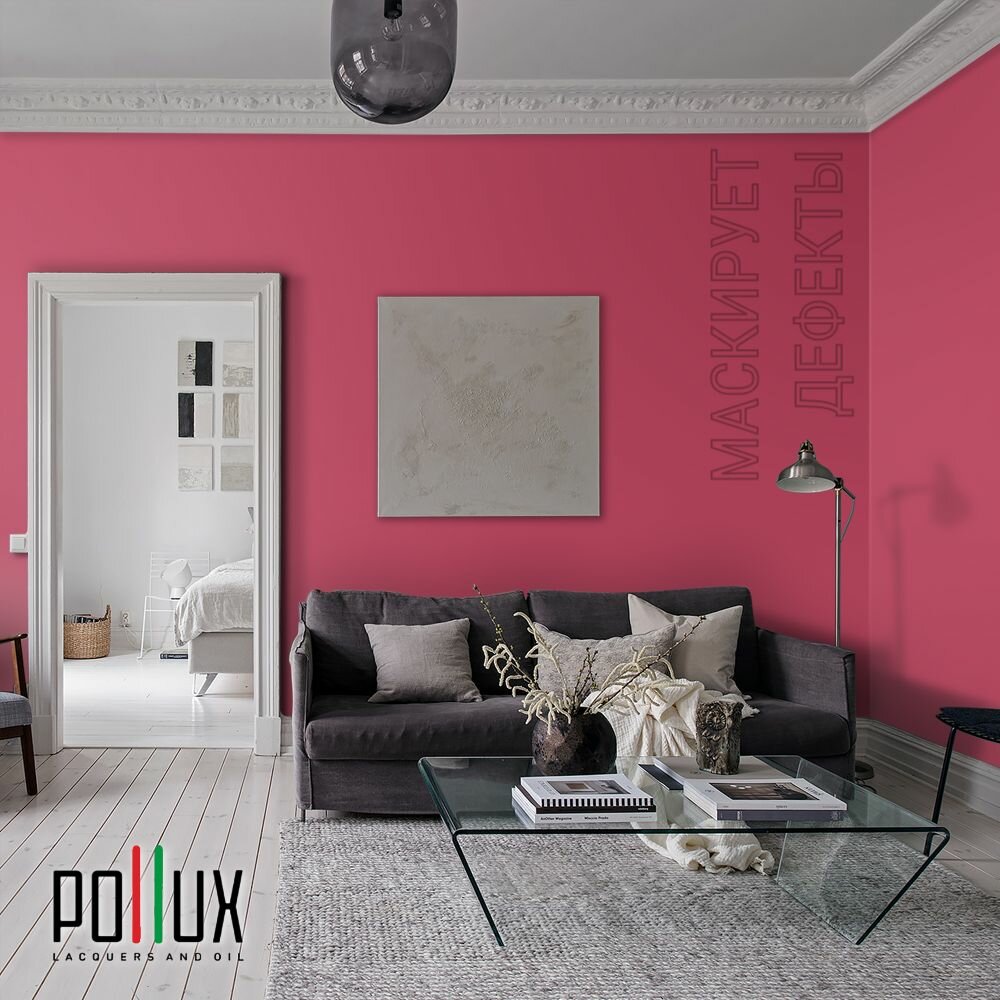 Краска моющаяся интерьерная для стен и потолков, Pollux INTERIOR без запаха, быстросохнущая, акриловая, матовое покрытие, цвет NCS S 2005-R10B, 1л.