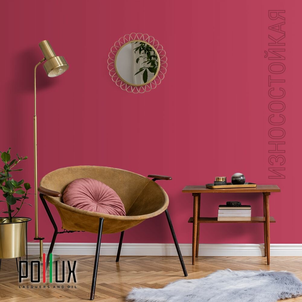 Краска моющаяся интерьерная для стен и потолков, Pollux INTERIOR без запаха, быстросохнущая, акриловая, матовое покрытие, цвет NCS S 3030-R10B, 1л.