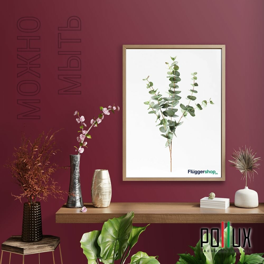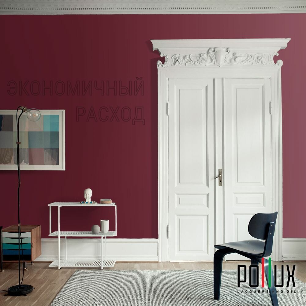 Краска моющаяся интерьерная для стен и потолков, Pollux INTERIOR без запаха, быстросохнущая, акриловая, матовое покрытие, цвет NCS S 3030-R10B, 1л.