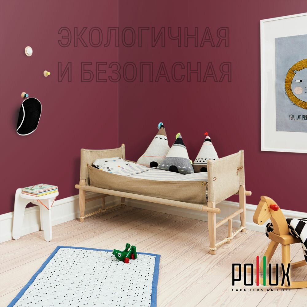 Краска моющаяся интерьерная для стен и потолков, Pollux INTERIOR без запаха, быстросохнущая, акриловая, матовое покрытие, цвет NCS S 2005-R10B, 1л.