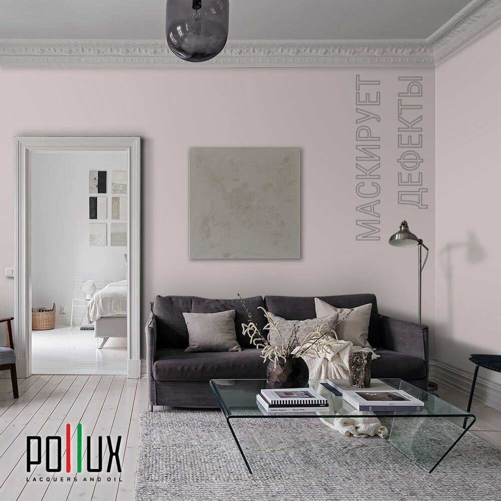 Краска моющаяся интерьерная для стен и потолков, Pollux INTERIOR без запаха, быстросохнущая, акриловая, матовое покрытие, цвет NCS S 7010-R10B, 1л.