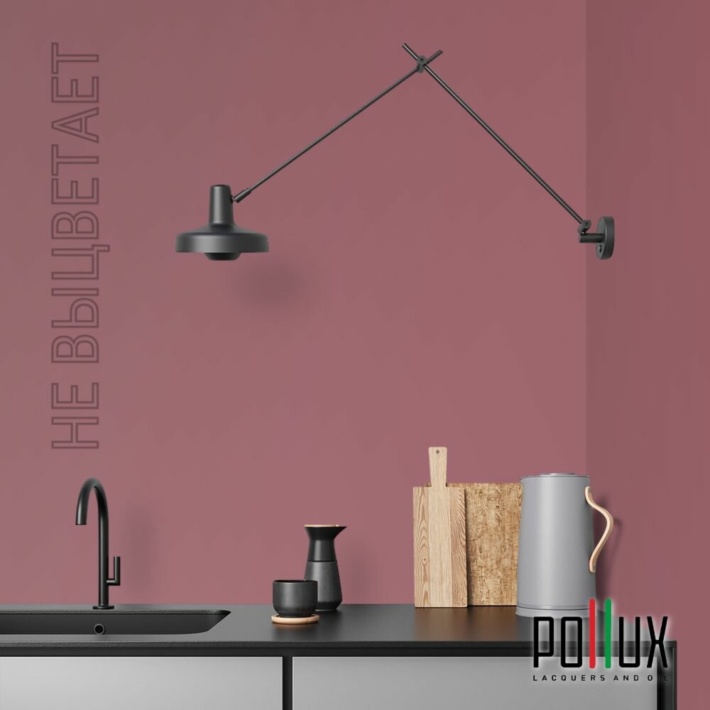 Краска моющаяся интерьерная для стен и потолков, Pollux INTERIOR без запаха, быстросохнущая, акриловая, матовое покрытие, цвет NCS S 2005-R10B, 1л.
