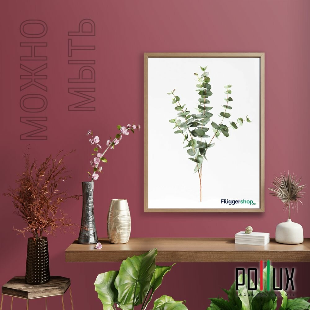 Краска моющаяся интерьерная для стен и потолков, Pollux INTERIOR без запаха, быстросохнущая, акриловая, матовое покрытие, цвет NCS S 3030-R10B, 1л.