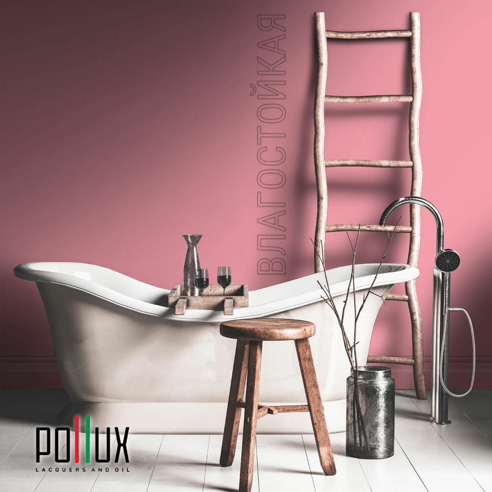 Краска моющаяся интерьерная для стен и потолков, Pollux INTERIOR без запаха, быстросохнущая, акриловая, матовое покрытие, цвет NCS S 3030-R10B, 1л.