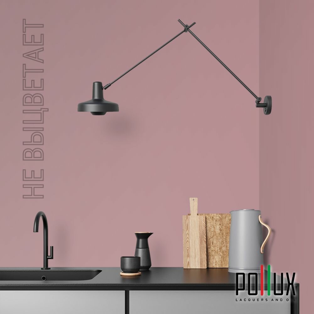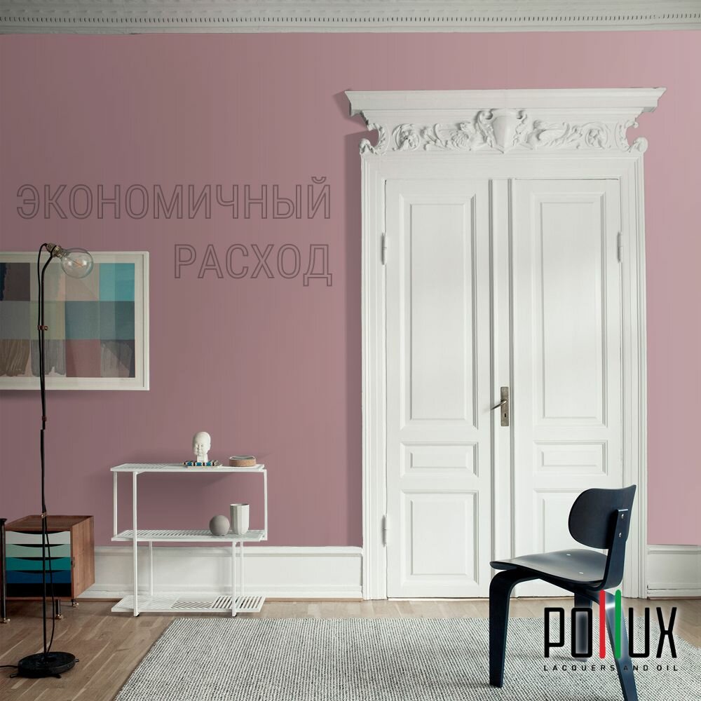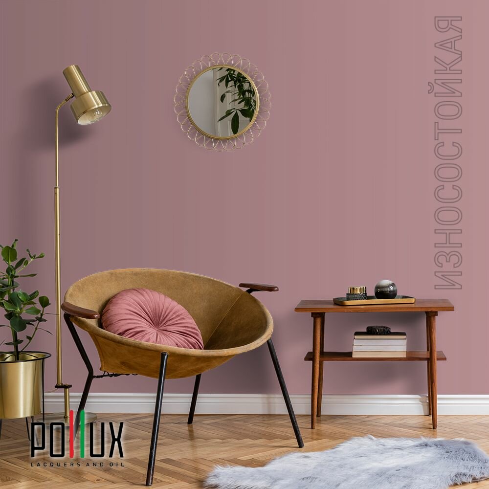 Краска моющаяся интерьерная для стен и потолков, Pollux INTERIOR без запаха, быстросохнущая, акриловая, матовое покрытие, цвет NCS S 0907-R10B, 1л.