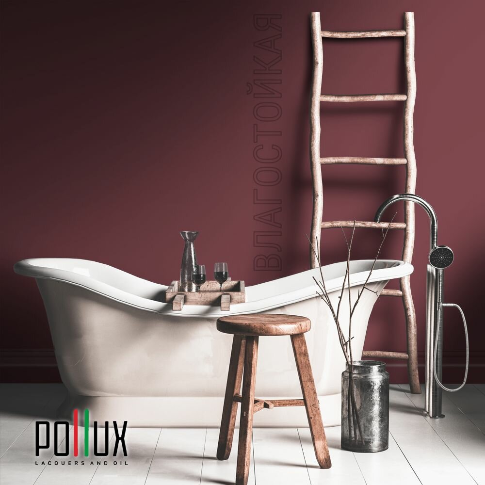 Краска моющаяся интерьерная для стен и потолков, Pollux INTERIOR без запаха, быстросохнущая, акриловая, матовое покрытие, цвет NCS S 3030-R10B, 1л.