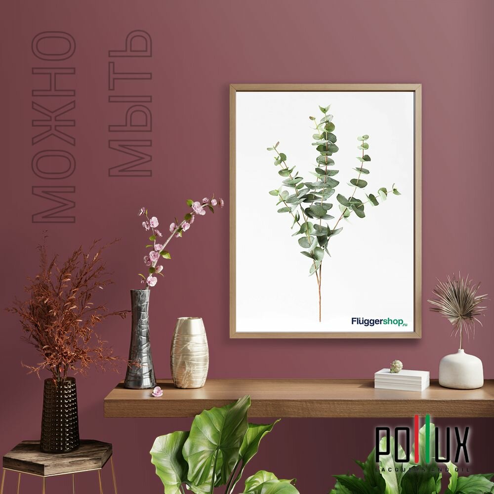 Краска моющаяся интерьерная для стен и потолков, Pollux INTERIOR без запаха, быстросохнущая, акриловая, матовое покрытие, цвет NCS S 2005-R10B, 1л.