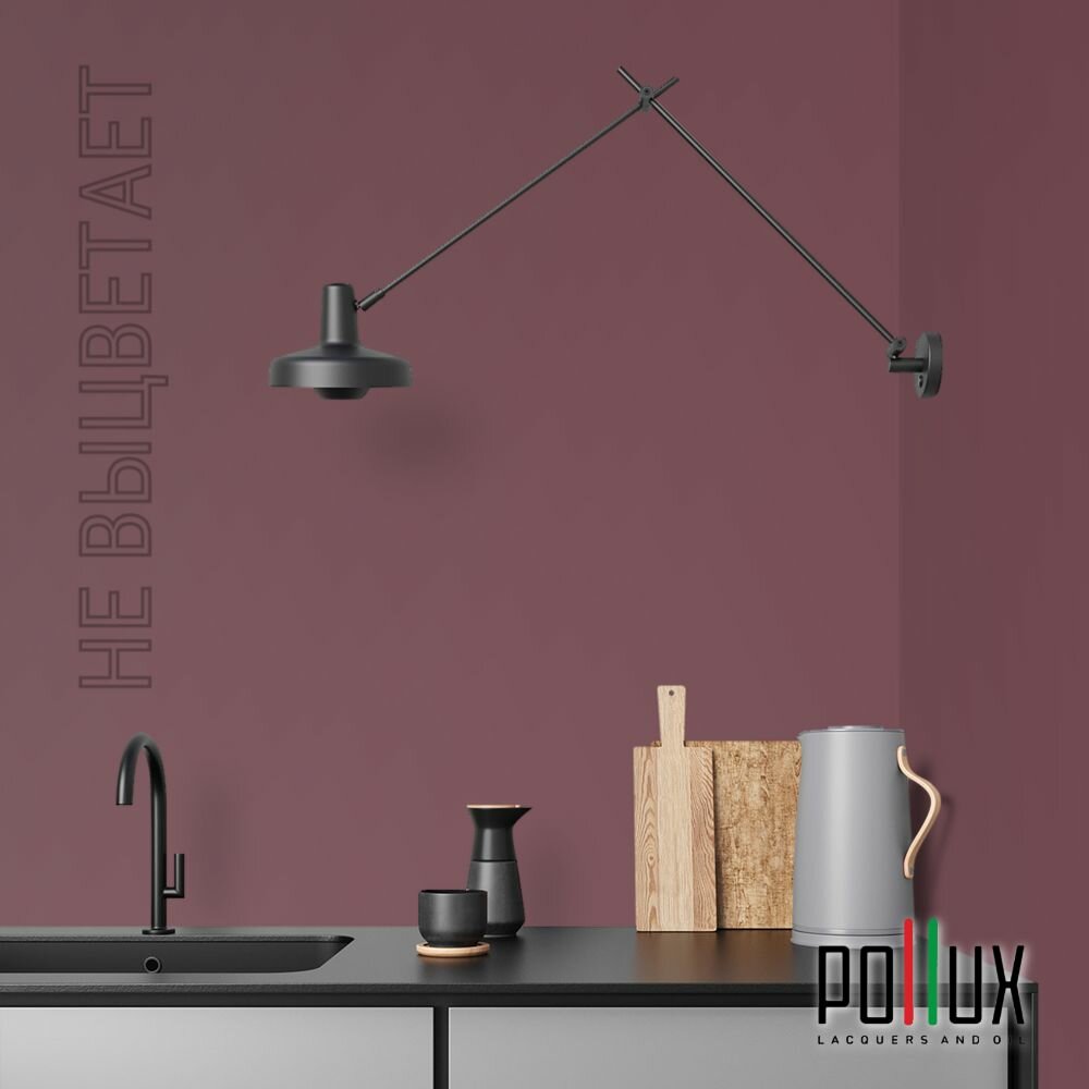 Краска моющаяся интерьерная для стен и потолков, Pollux INTERIOR без запаха, быстросохнущая, акриловая, матовое покрытие, цвет NCS S 7020-R10B, 1л.