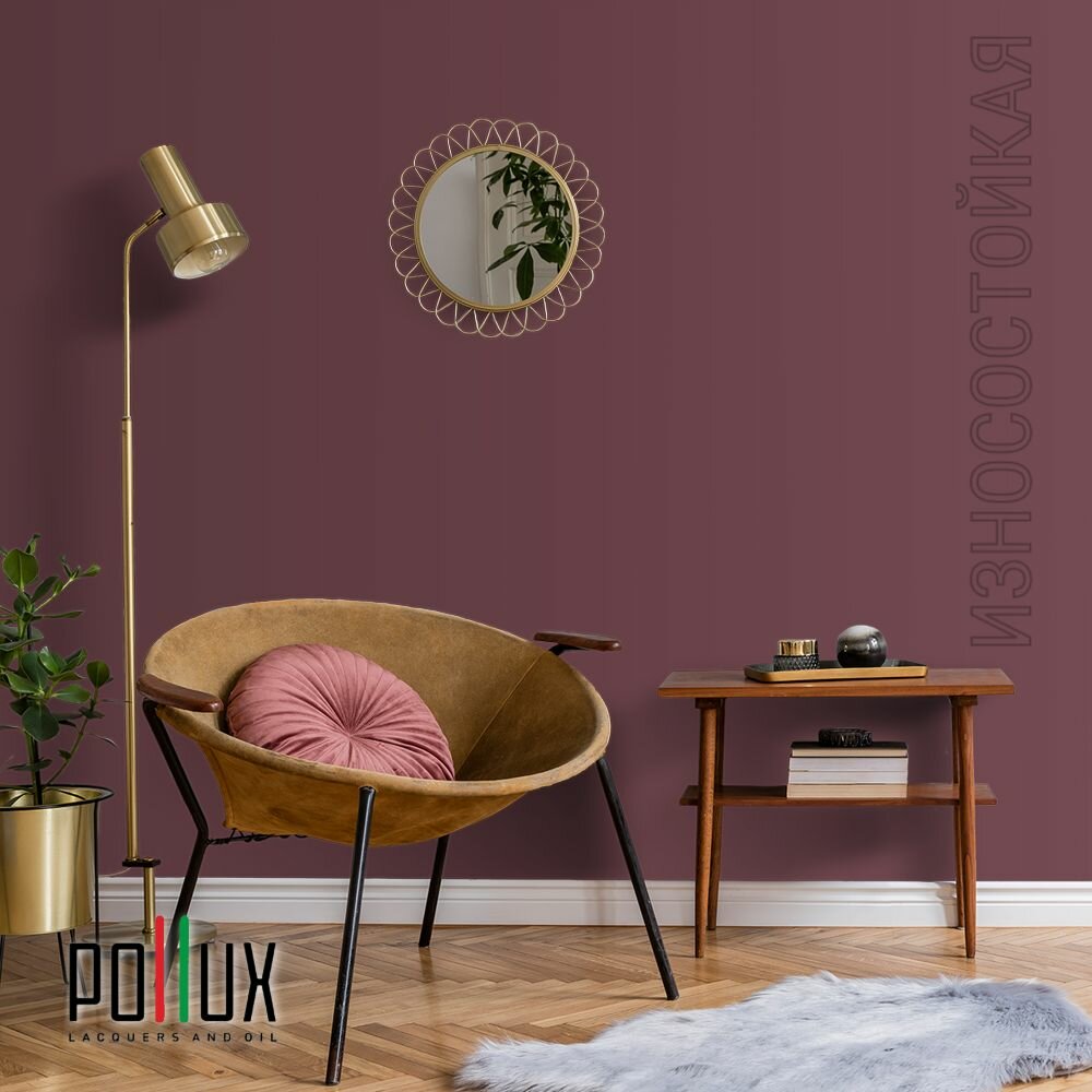 Краска моющаяся интерьерная для стен и потолков, Pollux INTERIOR без запаха, быстросохнущая, акриловая, матовое покрытие, цвет NCS S 2005-R10B, 1л.
